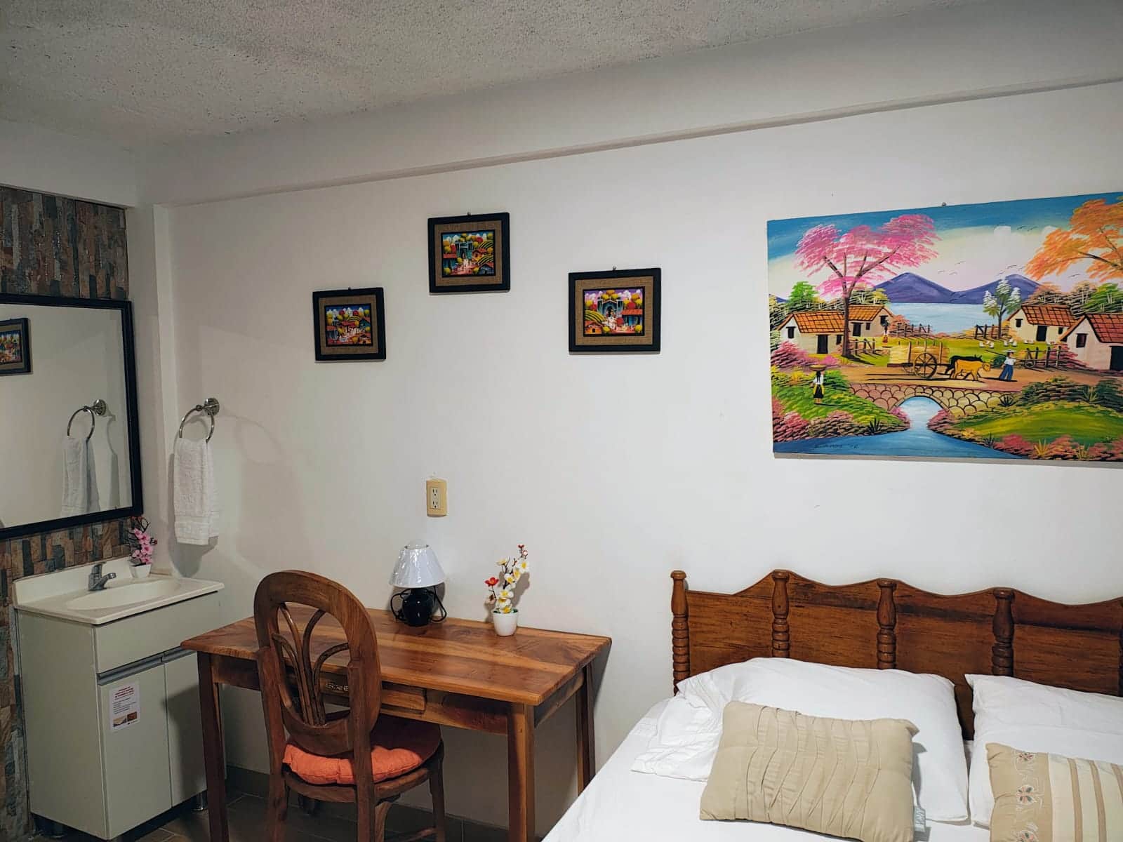 Settle into the scenic "Mil Cumbres" bedroom in our 350sqm villa in Planes de Renderos, immersed in mountainous beauty and flavorful Salvadoran fare amid coffee plantations. Merely 15 minutes from San Salvador and 45 minutes from Playa San Diego beaches, Villa Lombardia delivers exceptional tranquility, consistently mild climate, and personalized service. Adjacent to trails at Puerta del Diablo and Parque Balboa, traditional villages like Panchimalco and Rosario de Mora, diverse dining options, and panoramic vistas of volcanoes and city lights, Planes de Renderos serves as the flawless gateway to a complete Salvadoran journey. At Villa Lombardia, equip your basecamp with all necessities in El Salvador, such as A/C, fast internet, a functional kitchen, laundry services, vibrant garden, terrace, and five comfortably appointed bedrooms – the ideal place for you or your loved ones to start your getaway.